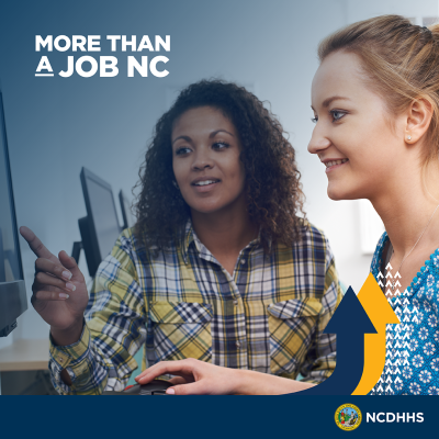 | More Than a Job NC Caption: Need help meeting SNAP work requirements? More Than a Job NC offers free job training, education programs, and work opportunities. Ask your caseworker or visit ncdhhs.gov/morethanajob. |